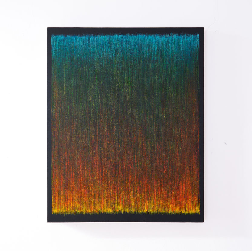 To encounter others, one must first understand oneself. By organizing the knowledge and experiences that fill our inner world, we create space to embrace new perspectives and ideas from others. The purpose of this research is to help people engage in self-reflection through the appreciation of art. This study aims to enhance individual mental health and promote community stability. When I gaze at nature, I often find myself lost in thought. These thoughts are mostly reflections on the past, bringing up fragments of memories from various times and places. As I immerse these memories into the natural surroundings and contemplate them, I begin to see the previously hidden circumstances and causal relationships more clearly. Viewing life’s events from an objective standpoint, as if mapping them out like a mind map, reveals the significant connections that link these events. I focus on the causes that trigger such self-reflection and internal contemplation. The brain operates through a meticulous input-output mechanism. Starting from the hypothesis that specific forms in nature input into the brain, thus triggering internal contemplation, my research began to seriously explore the intersection of art and brain science. The works created for this research are designed as devices to activate positive internal contemplation in the audience. The vertical thin lines in the artwork represent the harmony of one or two colors, creating various tones. These lines form abstract shapes that stimulate memories existing within the viewer’s mind. The colors used in the artwork are based on my experiences with nature. I reduced the natural color schemes from my memories into simple lines. I employed reduction techniques to depict natural forms that could exist in any viewer’s memory worldwide. For instance, to refine natural colors, I used a microscope to distinguish and record the various colors and tones that make up a single color, then applied those findings. Additionally, I conducted research on how visual data should be shaped to activate the Default Mode Network (DMN) by referencing various neuroaesthetic books and papers. The Default Mode Network (DMN) is a brain network activated when the mind is not focused on external tasks. It is deeply involved in internal mental activities such as self-reflection, memory recall, internal thought, and social cognition. The DMN primarily consists of the medial prefrontal cortex (mPFC), posterior cingulate cortex (PCC), temporal lobes, and hippocampal formation. Through Vessel’s 2012 study, I learned that the DMN is activated during the appreciation of art, playing a crucial role in promoting self-reflection. The study measured the brain activity of participants viewing various artworks using fMRI, discovering that when art moved the participants, the DMN was actively engaged. This suggests that art appreciation can induce personal internal thought and self-reflection. The study concludes: “Intense aesthetic experience activates the default mode network, which is associated with self-referential mental activity and reflective thought” (Vessel, 2012). This led me to realize that art appreciation goes beyond mere visual pleasure; it is a significant tool for personal introspection and self-awareness. By activating the DMN through art, it can positively influence an individual’s mental health and emotional stability. Starting with this exhibition, I will strive to expand art beyond historical and cultural records or investment purposes, into the realm of public health. I will deeply research how art can profoundly impact our lives and how it can help us create a better society. Through this research, I aim to combine scientific rigor with artistic creativity to substantiate the impact of art on public health. Reference: Vessel, E. A., Starr, G. G., & Rubin, N. (2012). The brain on art: Intense aesthetic experience activates the default mode network. Frontiers in Human Neuroscience, 6, 66. https://doi.org/10.3389/fnhum.2012.00066